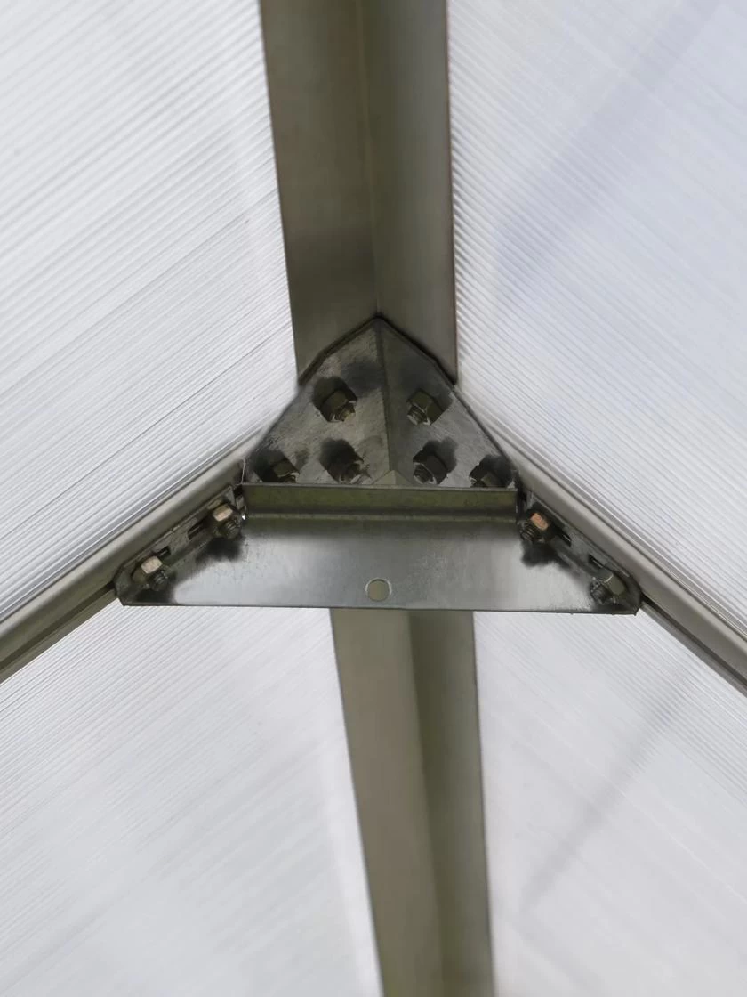 The essence of spacious gardening; this greenhouse features high headroom and 96 square feet for improved working space, wide double doors and low threshold for comfortable and easy access. Two vent windows allow temperature, humidity and airflow regulation. Additionally it includes a Galvanized Steel base, adding structural support, stability and alignment. Set up is easy and fast with the Sliding panels’ assembly system; just slide and lock the virtually unbreakable, twin-wall polycarbonate panels right into the greenhouse frame. Your plants will enjoy an insulated environment, protected from strong sunlight exposure and great conditions for nurture and growth.