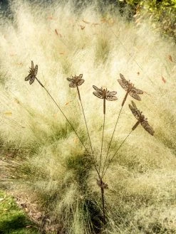 Usually a garden full of insects might attract birds, but these whimsical insect-themed garden stakes keep birds at bay, protecting seeds and mature crops from sneaky snackers and any, uh, mess birds might otherwise leave. Available in 2 styles, these Butterfly or Dragonfly stakes gently sway in the wind and reflect the sun’s rays, naturally discouraging birds, while adding dynamic elements of movement and light to your garden. Made from durable steel in a distinctive and attractive flamed finish, you can bend and splay all 5 insect-topped “stems” to create your favorite design.