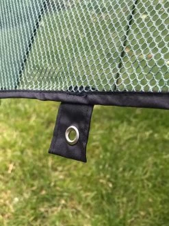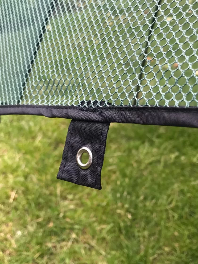 - PE (net, seam and apron); steel (eyelet, rod, pegs); fiberglass (ribs); ABS (rib tips, top cap)