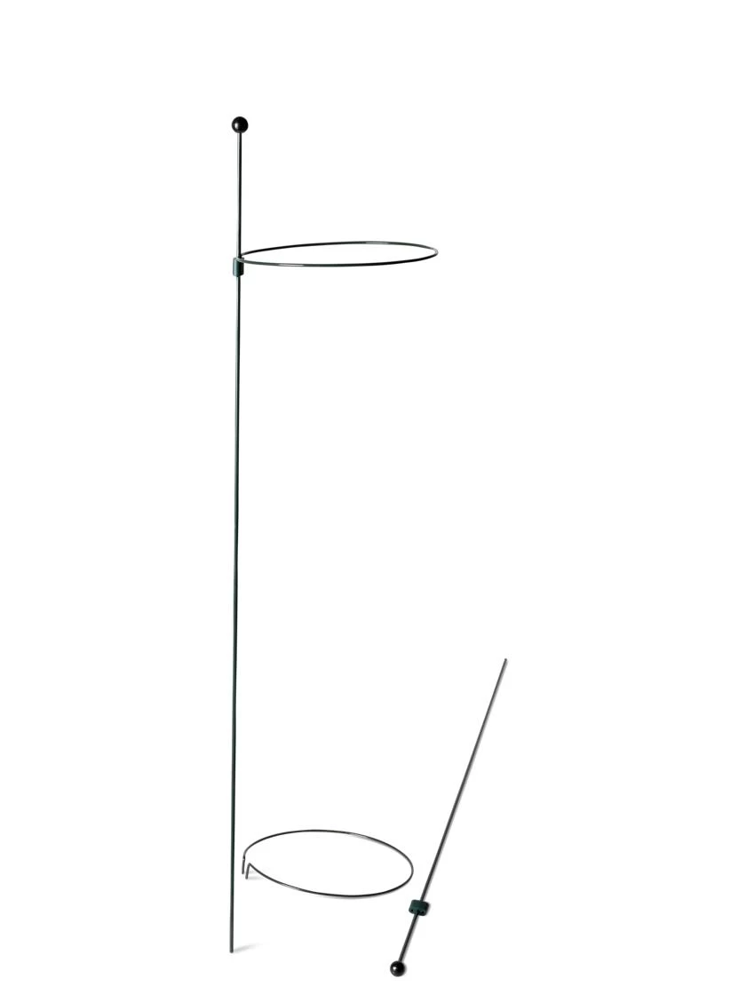 Designed to last a lifetime, these superior plant rings are simple, attractive, and ultra versatile. The unique system allows rings to slide easily up the stake to keep pace with your plant as it grows — and yet won’t slip down under bloom weight. Galvanized steel has a protective vinyl coat that’s gentle on stems. And a glossy finial atop the stake keeps human eyes safe from inadvertent pokes.