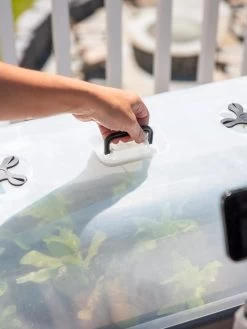 Think you have no room for a salad garden? Think again! This compact planter won’t take up much room and you’ll have mouthwateringly delicious (and fresh!) herbs and veggies at your fingertips. Plant in succession to keep the eating going all summer long, or grow a robust salsa garden to harvest in one go. An inner water reservoir with easy-fill tube makes sure plants stay happy and hydrated and a tall cloche keeps the growing going into the cool season. Two vents on the cloche let you regulate the air flow so tender plants don’t wilt or bake on sunnier days in early spring or late fall. If using the planter outdoors, be sure to remove the drainage plug so your plants don’t get waterlogged on rainy days.